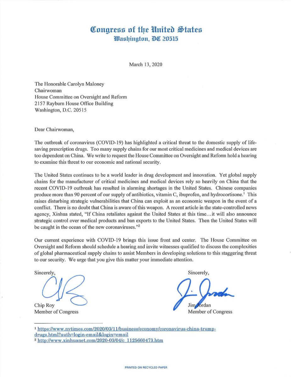 Those threats extend well beyond China holding up med supply as retaliation. It is also about bad quality and IP theft. While having everything made in home is not possible, having your supply chain outside of hostile authoritative country makes a lot of sense.