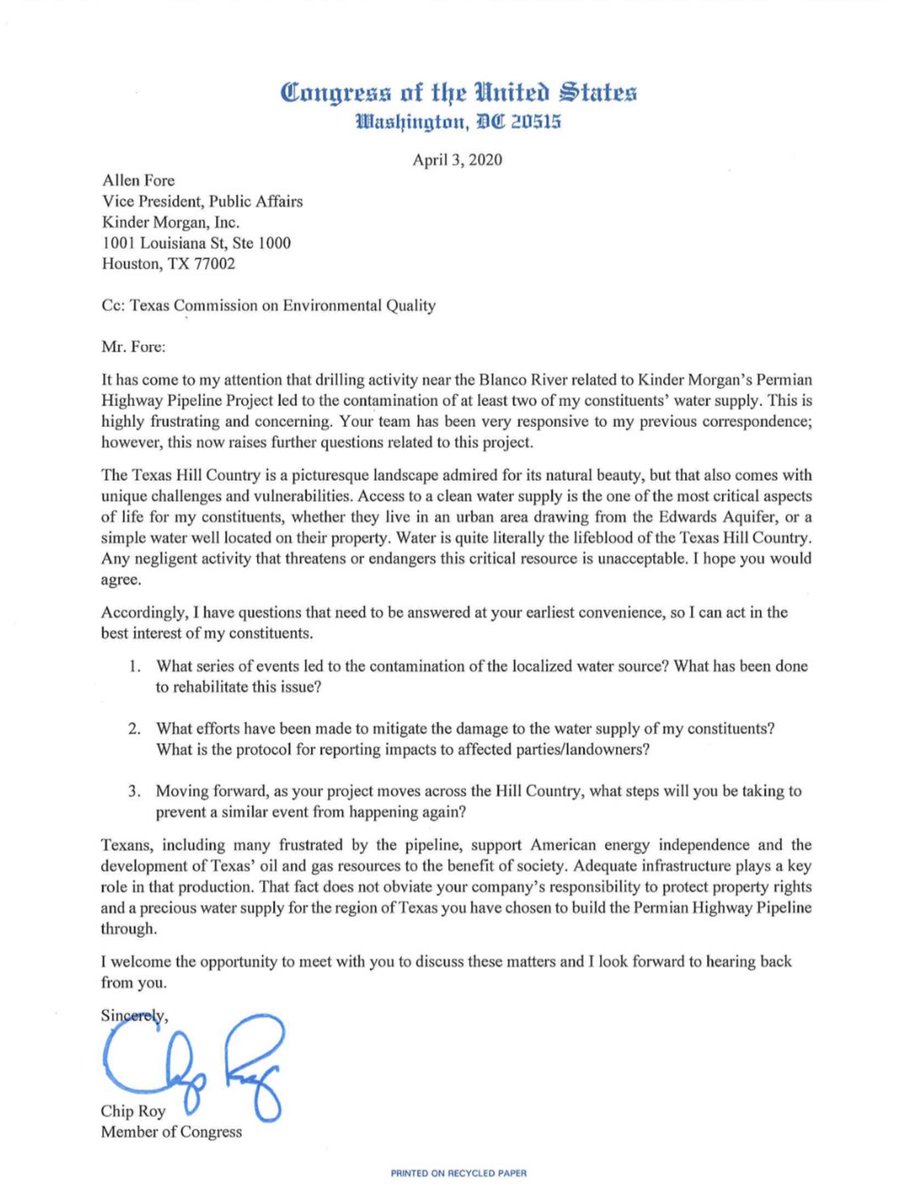 Thx for letter, but Moving forward?How many wells need to be affected before you shut down the PHP going through the KARST of the Hill Country??? Pls Demand an EIS before water of millions is contaminated! Why no EIS? You should want that!