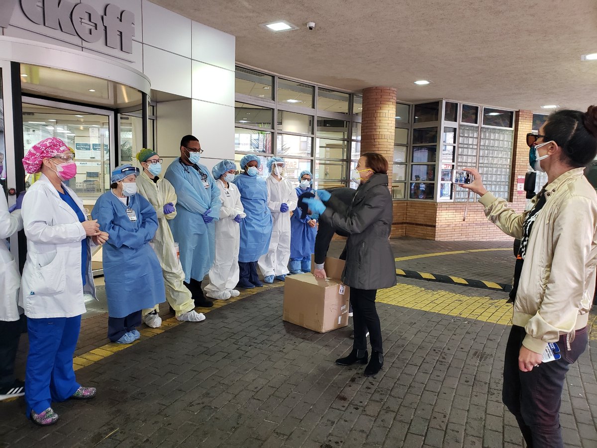 Today, joined @Masks4America, their co-founder @KristinMinkDC & @nynurses in delivering masks to #ProtectNurses. They're delivering 15k masks today in NYC. Proud to join them at #Wyckoff today where we delivered 1,440 after bringing more than 2,400 to Woodhull. @bobblanddesignpic.twitter.com/Gg8XTrLfIn
