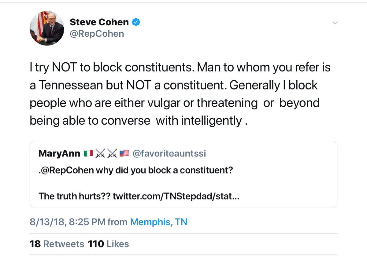 How about you be a man and keep me unblocked. Then let’s se how big of a man you are and unblock OUR VETERANS and your own constituents! Starting with