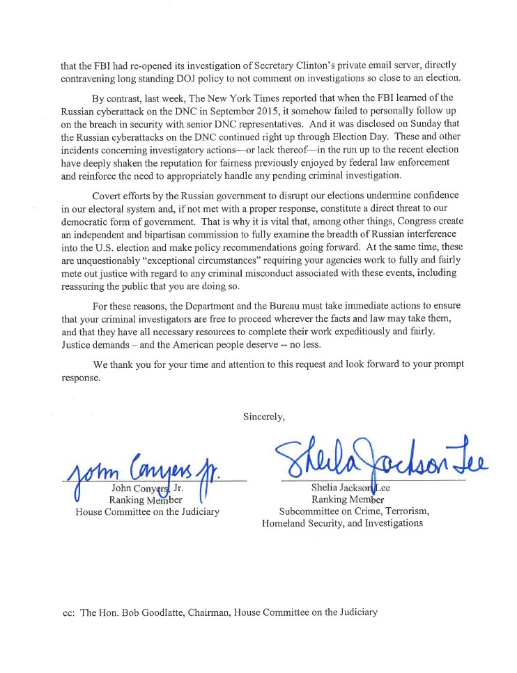 BREAKING: @RepJohnConyers @JacksonLeeTX18 urge FBI&DOJ to make Russian hacking a top priority & release docs to Cmte https://democrats-judiciary.house.gov/news/press-releases/house-judiciary-s-conyers-jackson-lee-call-safeguards-doj-fbi-russian-hacking … pic.twitter.com/Ji8upQzgol