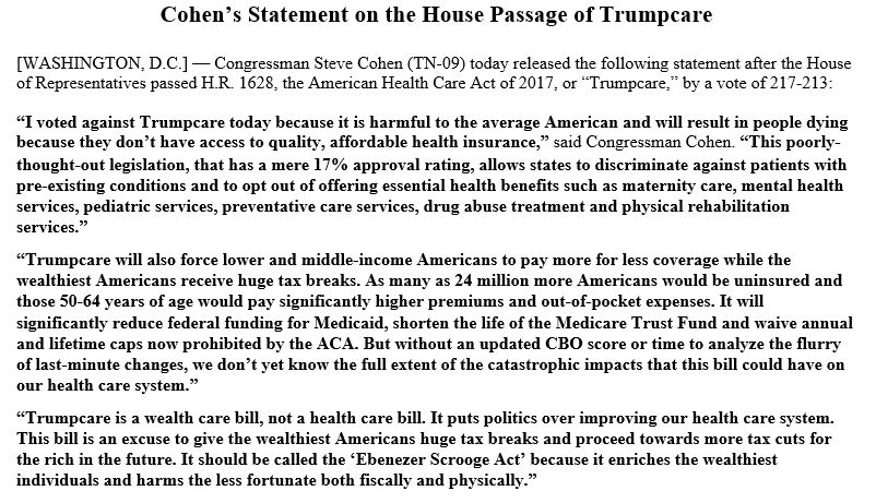 I don't like the phrase "Trumpcare" since it implies he cares. Call it the Republican bill, let them wear it around their necks for 2 years.
