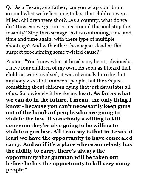 The Texas AG is out of his mind. How does anyone justify more arming? We are the laughing stock of the world. Can't keep people safe?!