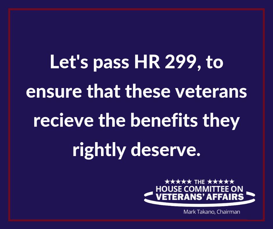 HR 299 does not provide earned benefits to Blue Water Navy, That was provided by Procopio case. HR 299 limits Procopio and potentially harms tens of thousands of sailors. MVA and the Blue Water sailors support S 1195