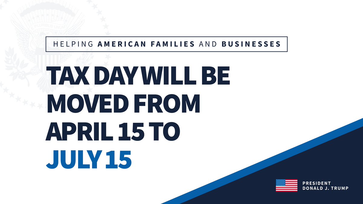 REMINDER tax day has been moved to JULY 15th to allow people to focus on their health & family during the #coronavirus pandemic.pic.twitter.com/Agn2bN3rpJ