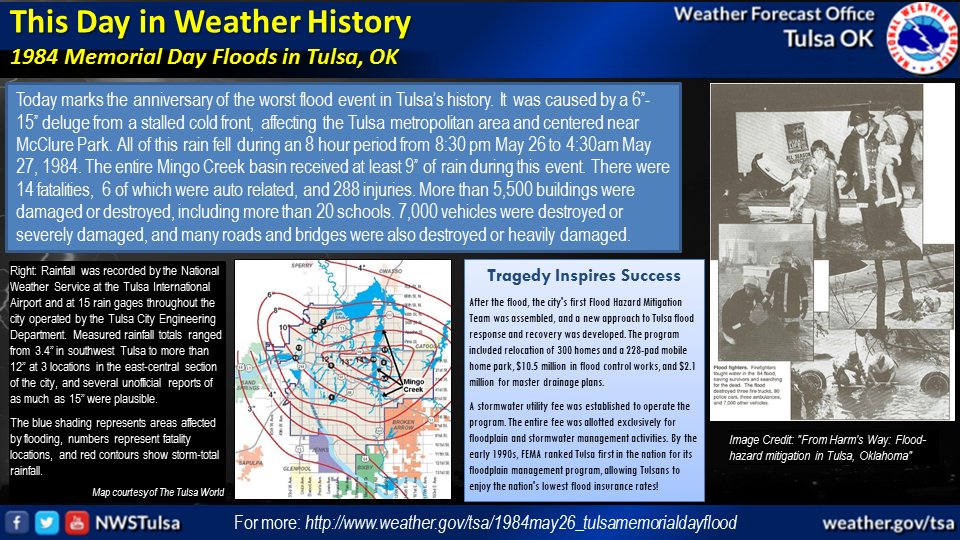 33 years ago tonight Tulsa saw it's worst flood disaster. The city's recovery led to on of the nation's model flood control programs. #okwx pic.twitter.com/rbdXv2oUYN