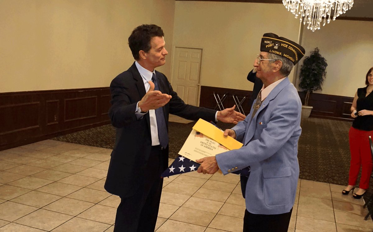 So honored to present #WW2 vet Joe Girolamo of #Livonia with flag flown over the @uscapitol! #MI11pic.twitter.com/6Bv7BFf0Tp