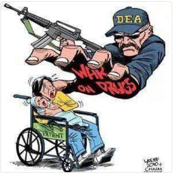 People in pain are not criminals either. Yet, we're treated as suspect drug-seekers, our doctors get arrested for no crime committed, hospitals & pharmacies treat us like crap. The DEA needs to go after the cartels and LEAVE OUR DOCTORS ALONE!pic.twitter.com/ydjL66vNhy