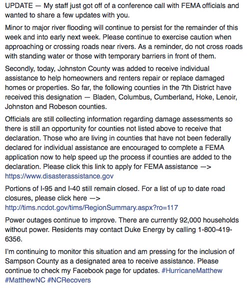 UPDATE on #HurricaneMatthew following a call with #FEMA this afternoon. #MatthewNC #NCRecoverspic.twitter.com/dBeVvSlIFp