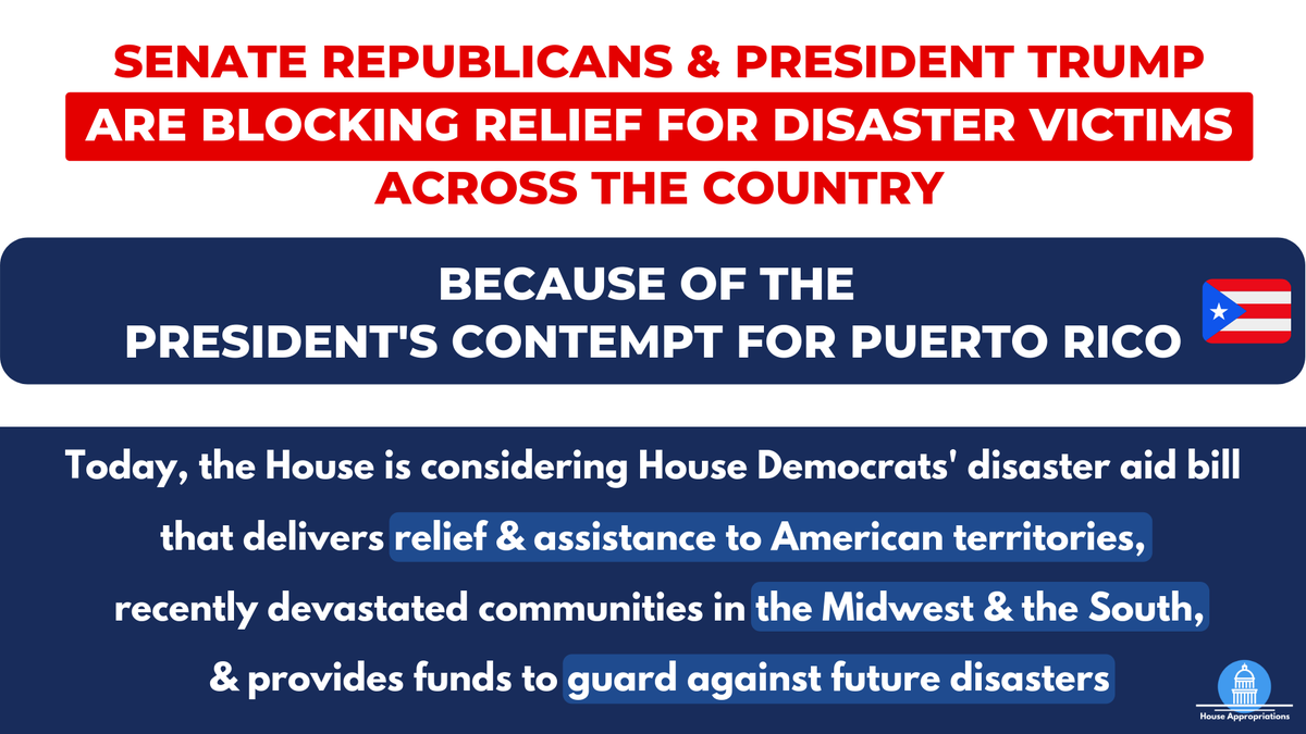 From Chair @NitaLowey, opening consideration of H.R. 2157, @HouseDemocrats' disaster relief bill: "American citizens are relying on our federal government to deliver a robust disaster relief package. They’ve waited long enough and, frankly, they can’t afford to wait any longer." pic.twitter.com/3w1adUv4eO