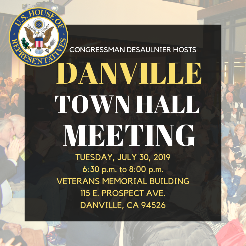 With so much going on both in Washington and at home in #CA11, we want to share updates with Contra Costa residents and hear from you. We hope you will join us at a town hall on July 30th in Danville. RSVP: https://desaulnier.house.gov/town-hall-rsvp pic.twitter.com/gGZa9dwBKA