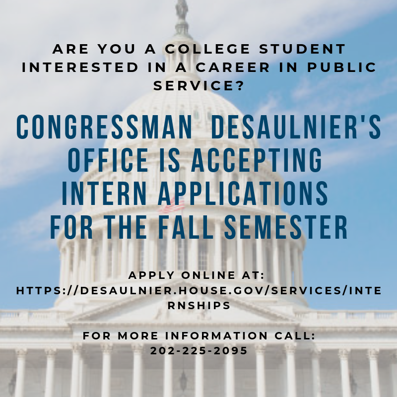 Are you a college student interested in public service? Would you like to obtain firsthand experience working in a fast-paced Congressional office? Our D.C. office is now accepting applications for the fall semester. You can apply at: https://desaulnier.house.gov/services/internships …pic.twitter.com/iLJgNlcX1h