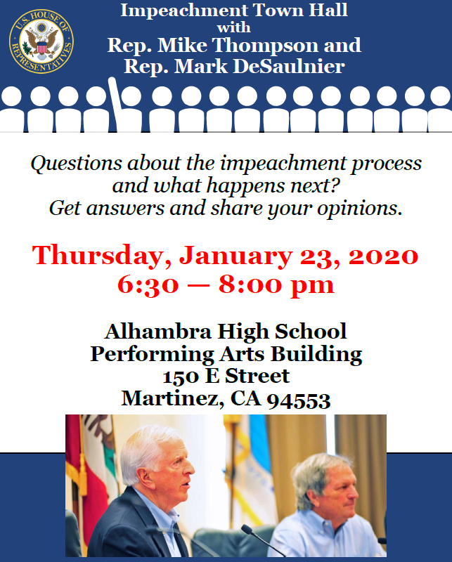 Join our town hall with Congressman Thompson for a conversation on the impeachment inquiry into President Trump on January 23rd at Alhambra High School. We hope to see you there!pic.twitter.com/xElRXVXEge