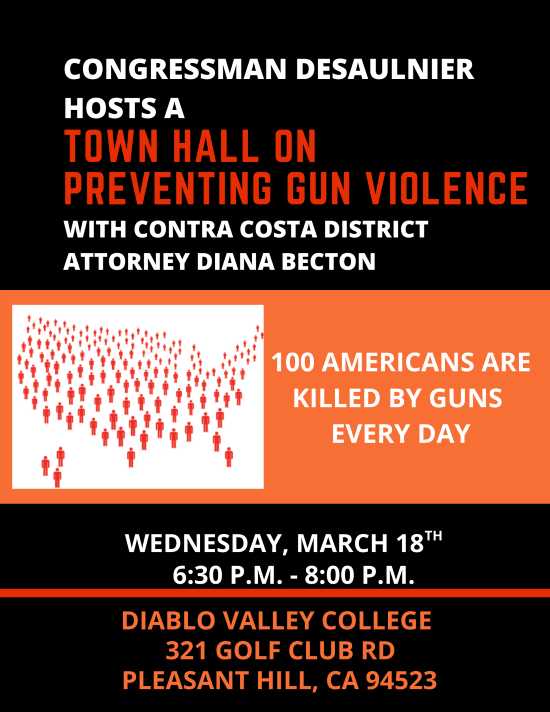 Join us March 18th, when I will be joined by Contra Costa County District Attorney's Office Diana Becton, for a town hall on gun violence prevention. We hope to see you at Diablo Valley College to make your voice heard on this critical issue.pic.twitter.com/h24kGAJaf4