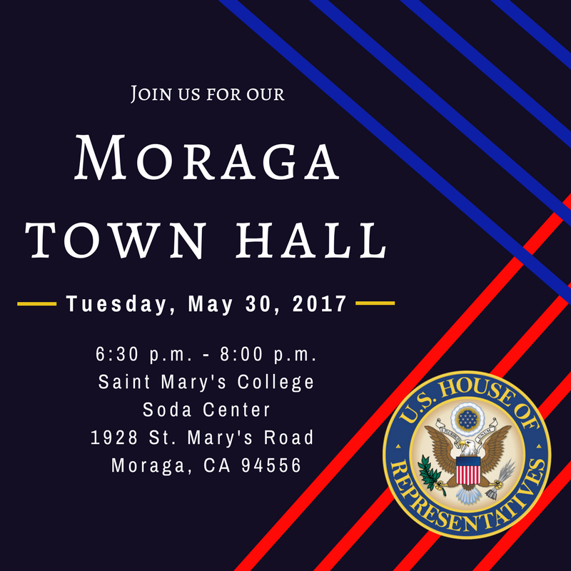 Please join us for a town hall meeting in Moraga on Tuesday, May 30th in the Soda Center at @stmarysca. RSVP here: http://bit.ly/2ra9KwS pic.twitter.com/woMvhu7Lev