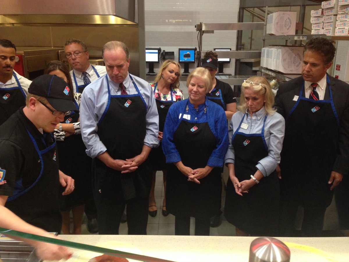 Nothing brings people together like #pizza. Serving up pizza at @dominos HQ today w/ the #MI delegation.pic.twitter.com/CWINVR0GC2