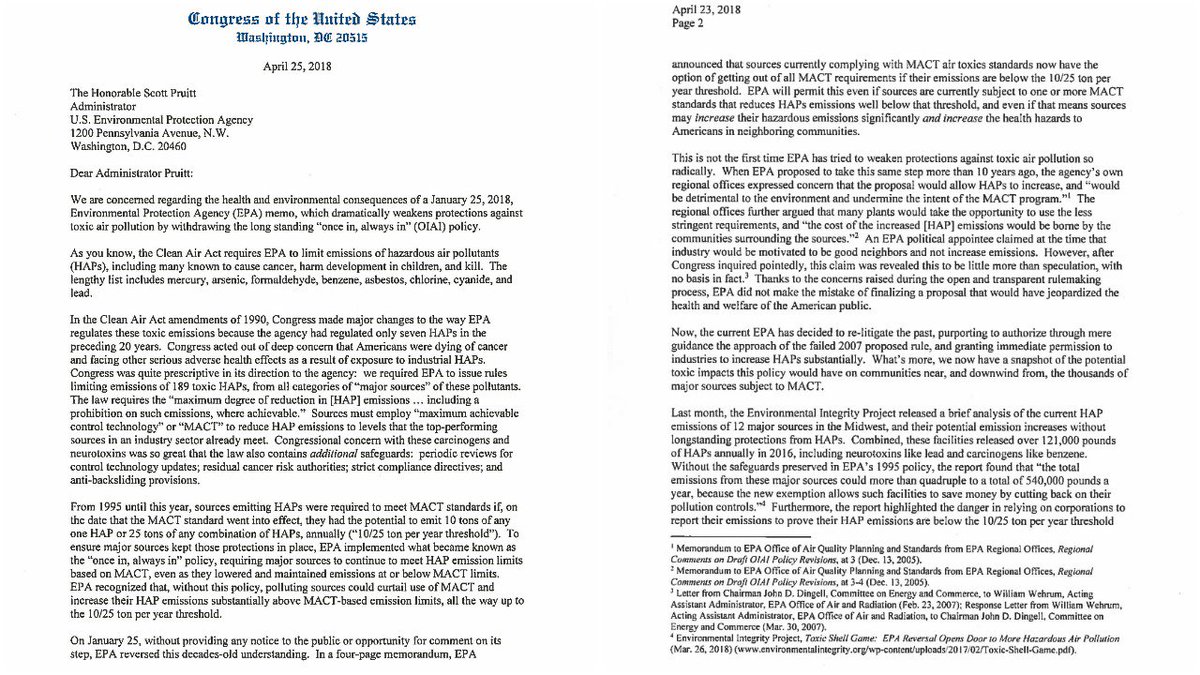"Honorable"? March 14, 16 Senators sent @EPAScottPruitt a letter urging him to reconsider his policies, protect the public from harmful levels pollutants and asked him 10 questions and to reply by April 9. He has done nothing. I don't expect anything with this either.