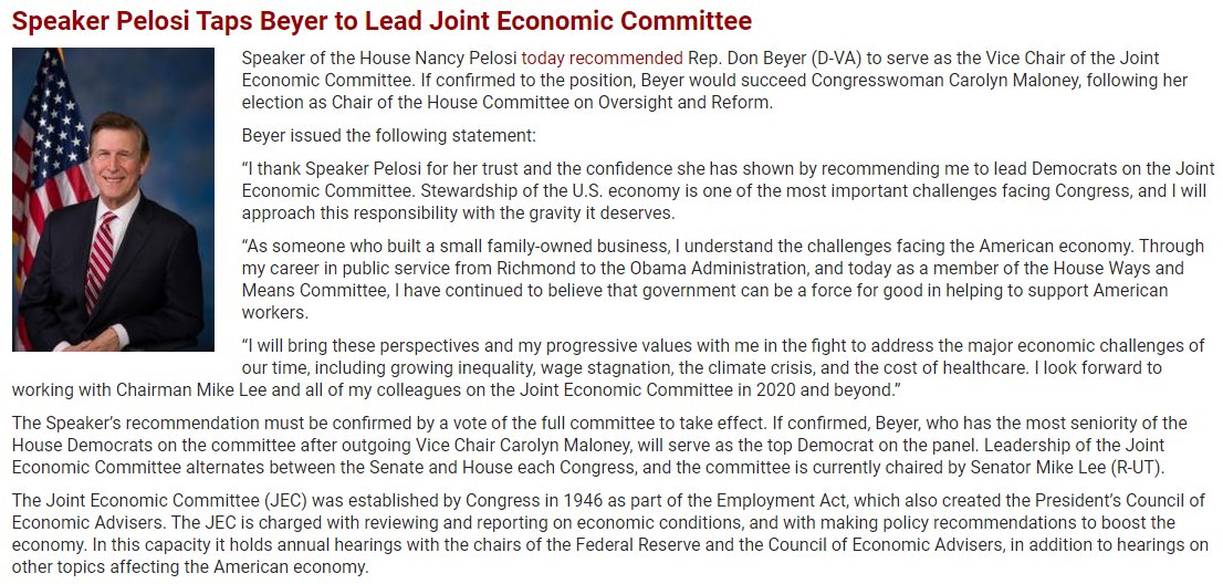 @SpeakerPelosi just named me as Vice Chair of the Joint Economic Committee@JECDems. I'll be succeeding my friend@RepMaloney, who now chairs@OversightDems, and working with@SenMikeLee. A very important responsibility:pic.twitter.com/MvOMr8FRc6