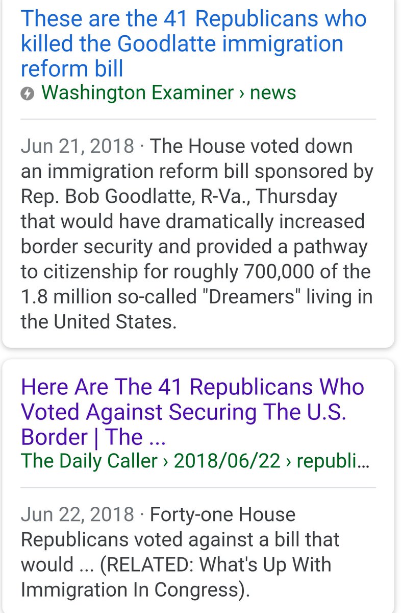 Trump lies (again) when he says Dems stopped an immigration and boarder security bill. @GOP holds the majority. A simple google search shows it was 41 @gop Republicans in Congress who actually voted against immigration reform and boarder security killing the bill. #FactsAreFactspic.twitter.com/rZOPov2a1d