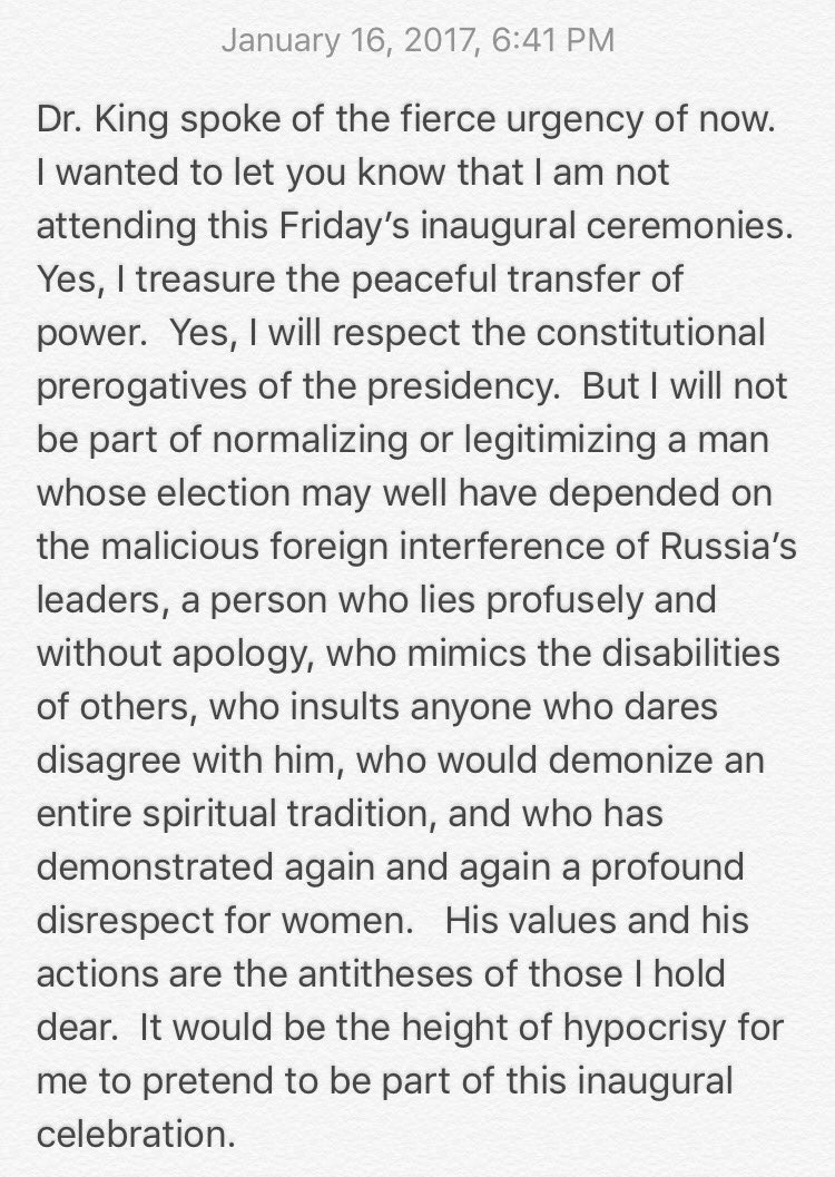 @RepDonBeyer for deciding not to attend the Inauguration.https://twitter.com/RepDonBeyer/status/821141280289857536 …