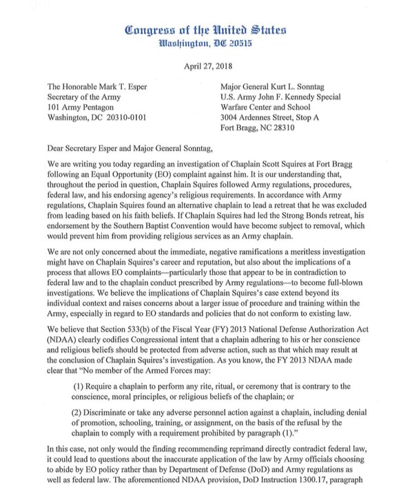 Today I'm joined by colleagues requesting answers surrounding the Army's treatment of one of its chaplains.