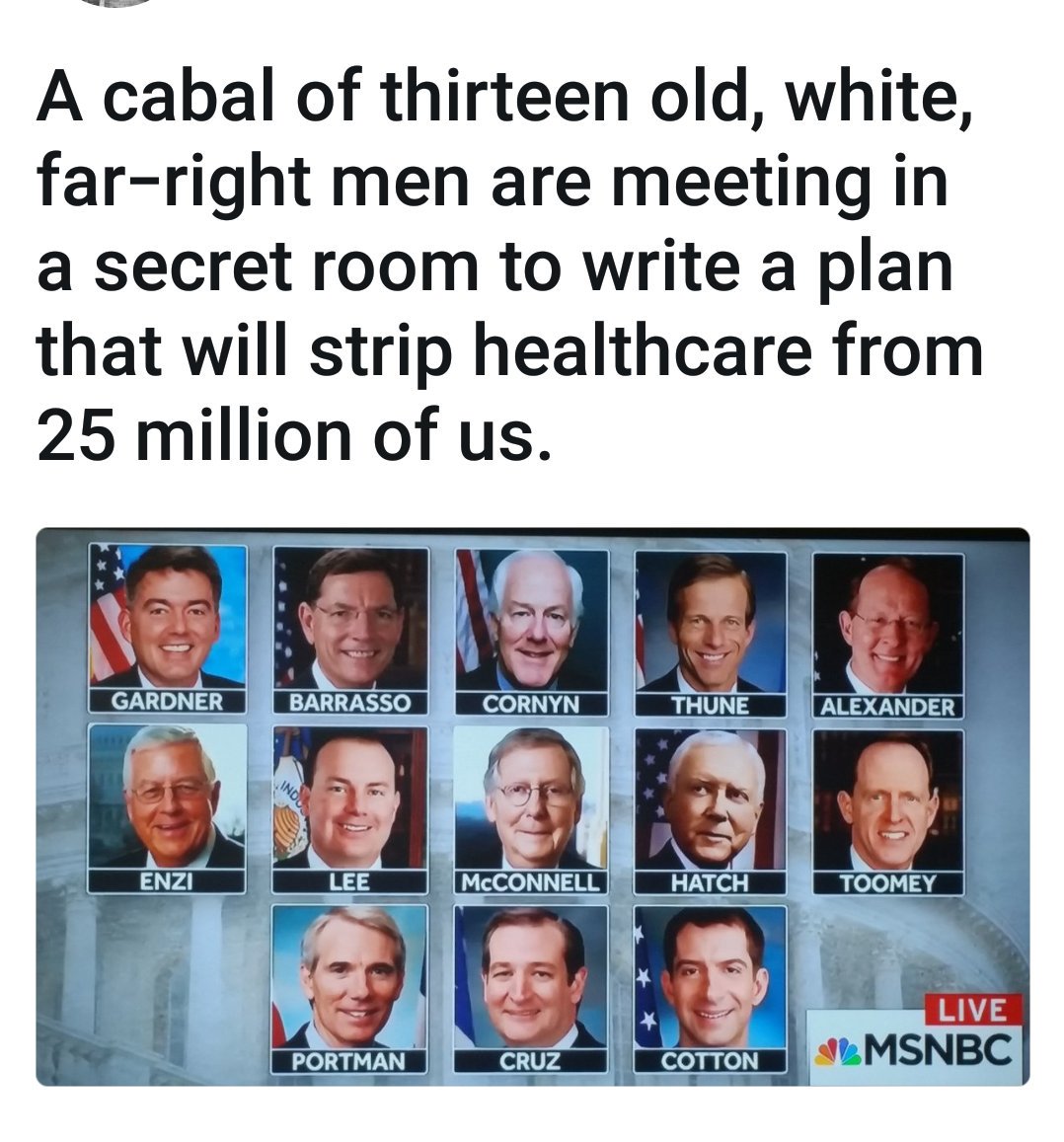 Seriously? You think dems should roll over? There are 15 old rich white guys plotting to ruin healthcare. That's obstruction.