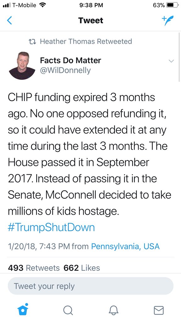 Your party controls Congress. You can bring a clean CHIP bill to the floor anytime you want. Stop holding these kids hostage and do your job.