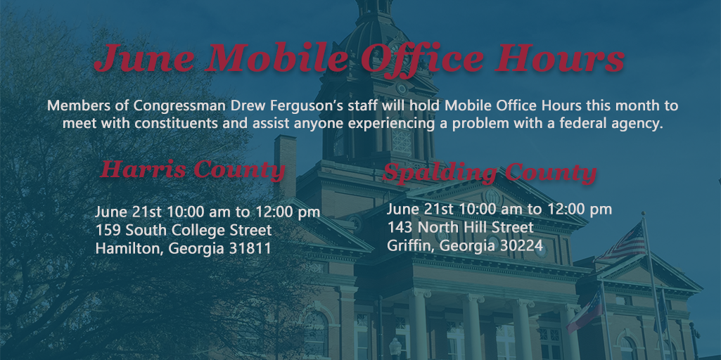 This month my staff will be hosting office hours in Griffin and Hamilton. Check out the graphic for more informationpic.twitter.com/PWyczqnocn