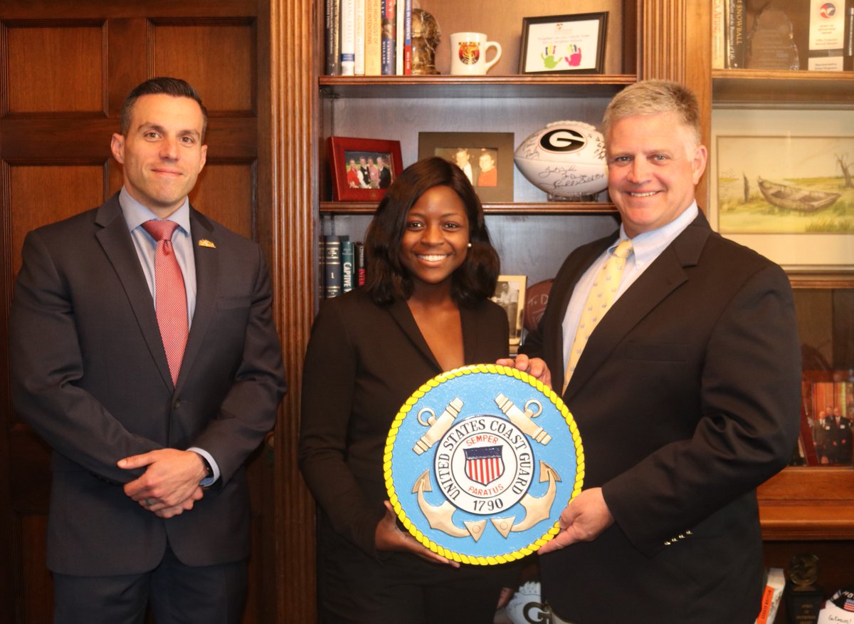 It was an honor to receive the Coast Guard Seal for my office from U.S. Coast Guard Academy Cadet Courtney Gilliam of Tyrone, Georgia. Please join me in thanking her for her service. I am proud that she calls #GA03 home!pic.twitter.com/GfbOFt1qFn
