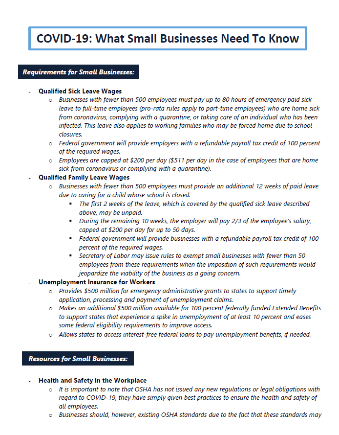I want to provide some additional information on what small businesses need to know as they continue to respond to #coronavirus.pic.twitter.com/oic3kjHp72