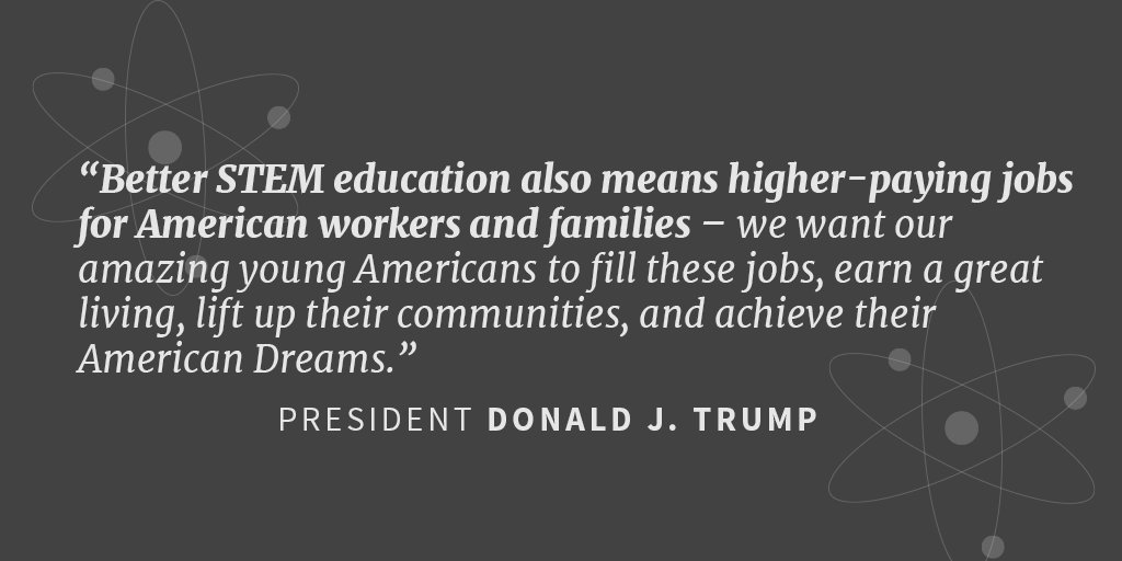 President Trump: Better STEM education also means higher-paying jobs for American workers and families... http://45.wh.gov/BCCVwe  pic.twitter.com/ydNDrr4IGA