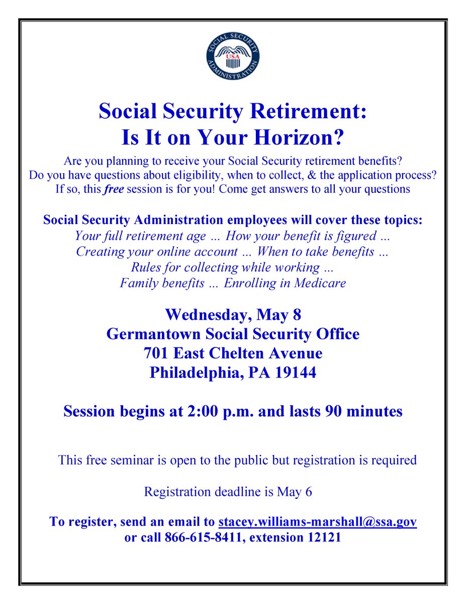 Are you in your 50s or early 60s? Then this free Social Security seminar could help you. The registration deadline is Monday so don’t miss out!pic.twitter.com/pLJRzcZhWQ
