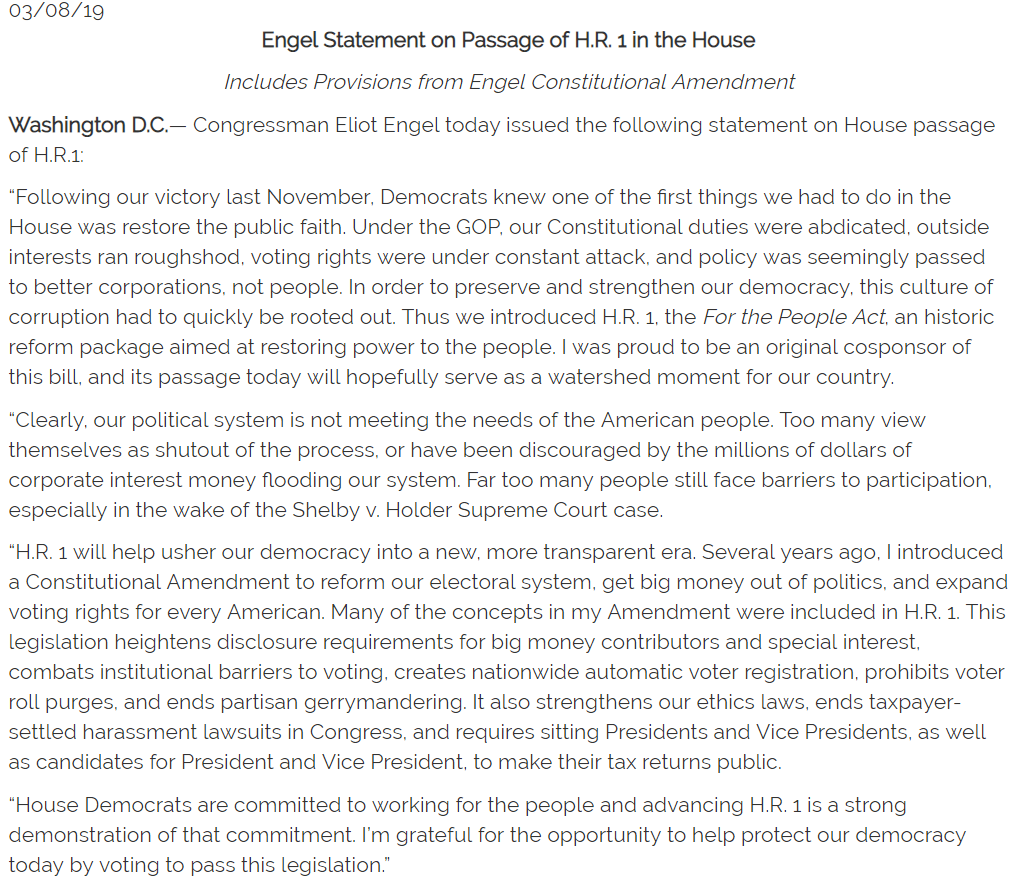 I just led the debate on 2 measures to check the Trump Administration’s use of military force: The No War Against Iran Act & a measure that would repeal the 2002 Iraq AUMF. The Constitution gives Congress, not the president, the power to declare war!https://foreignaffairs.house.gov/2020/1/engel-applauds-house-action-to-stop-unauthorized-wars …