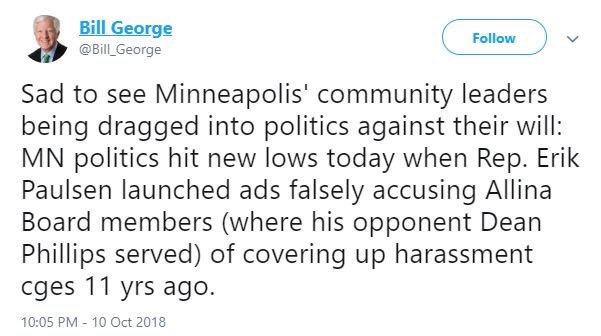 I read about your sleazy ad accusing Allina & Dean Phillips of ignoring abuse complaints. You’re really pathetic and desperate. You’re one of Trump’s lapdogs. I’m sick of you. You won’t even have townhall meetings.