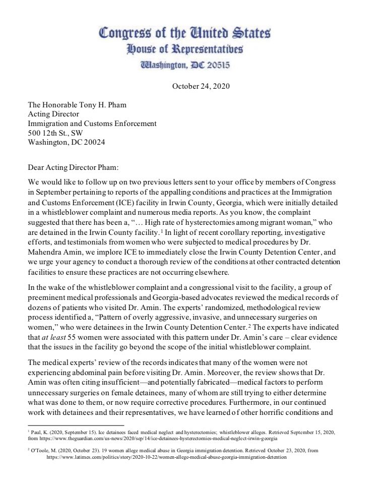 Our letter comes following a series of outreach to #ICE Acting Director Pham in response to the horrific conditions and practices that were permitted under his watch at the @ICEgov facility in Irwin County, Georgia. W/ @GaDetWatch