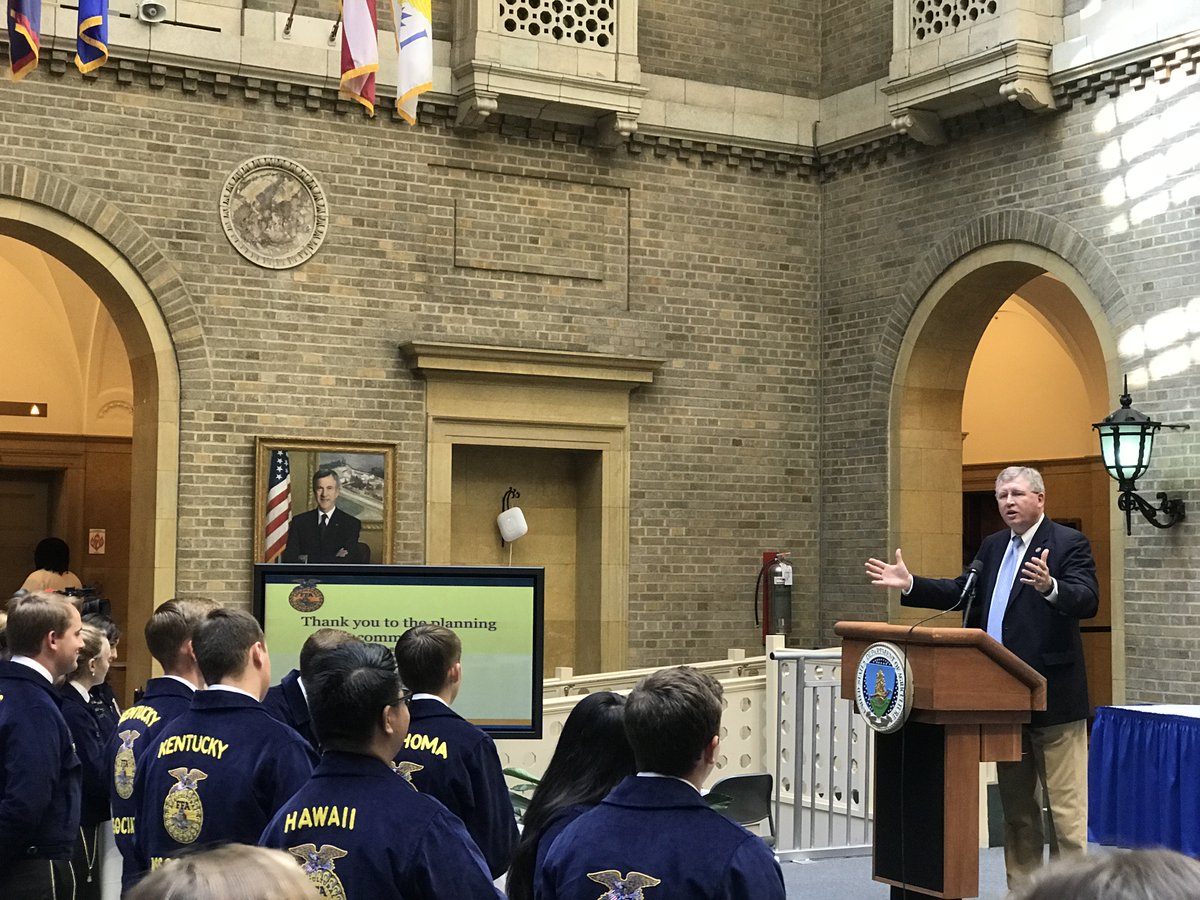 Spoke to FFA leaders from across the country this morning at @USDA, including @FFAOK President @HughbanksRidge & Secretary @truitttaylor_pic.twitter.com/MbcqZ2Cbts