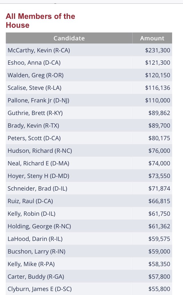 Correction: McCarthy leads the pack of pharma money.... https://www.opensecrets.org/industries/summary.php?ind=H04&cycle=2020&recipdetail=H&mem=Y …pic.twitter.com/34HUIAcToF