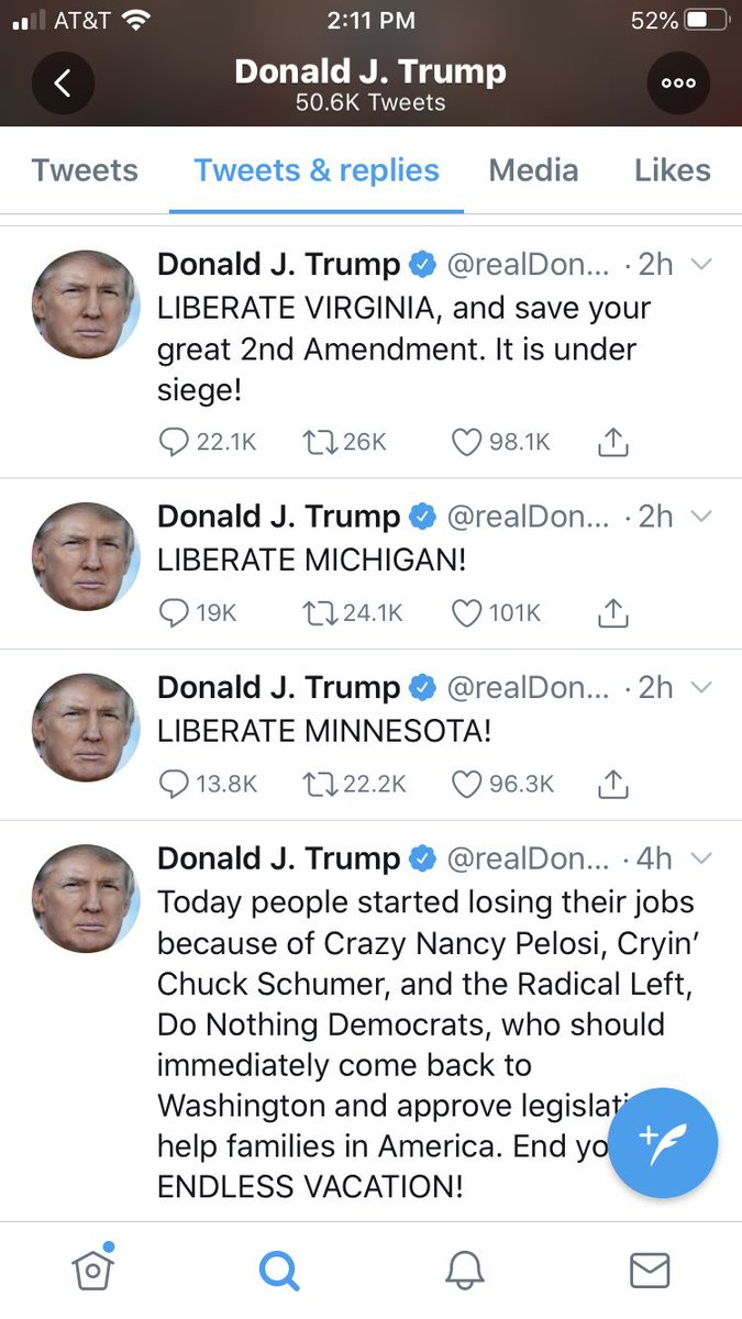 Trump tweeted “LIBERATE MICHIGAN!”. I want a tweet commenting on this immediately.