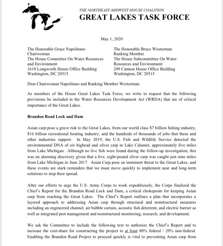 Great news➡️At the request of the Great Lakes Task Force, I’m glad to see T&I approved a # of key priorities for the Great Lakes basin in WRDA, such as removing Asian carp through the Brandon Road & the Great Lakes Coastal Resiliency Study. A huge win for the Great Lakes! #MI06pic.twitter.com/27mqkJxdAE