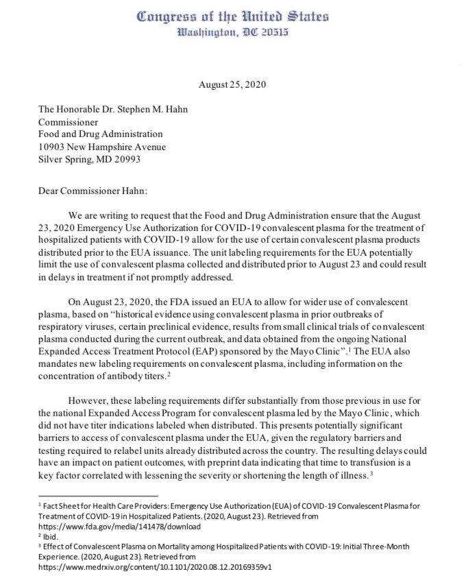 Thank you to your office for listening to our concerns, and for advocating for all our patients who may benefit from #convalescentplasma