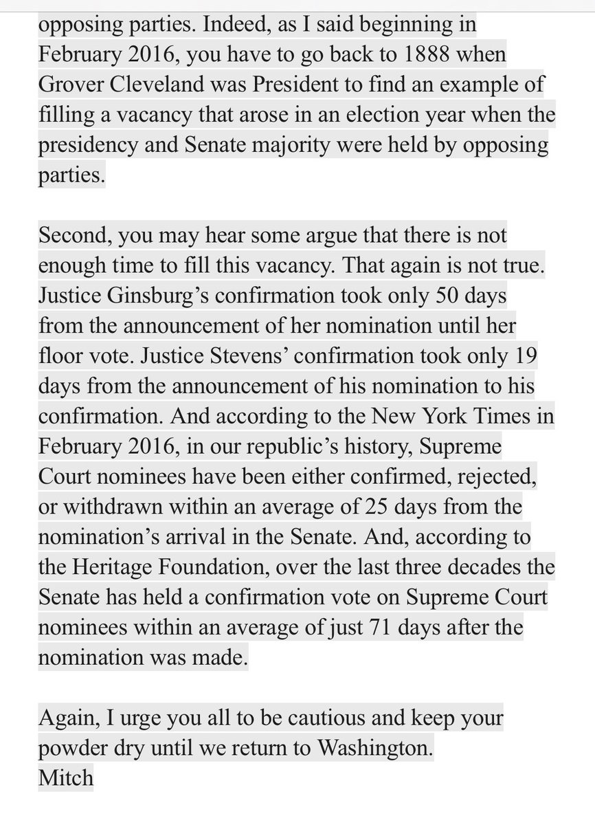There should be no Senate vote on a replacement. Isn’t that what McConnell said last time? What do you think? Will you urge you GOP colleagues in the Senate not to vote?