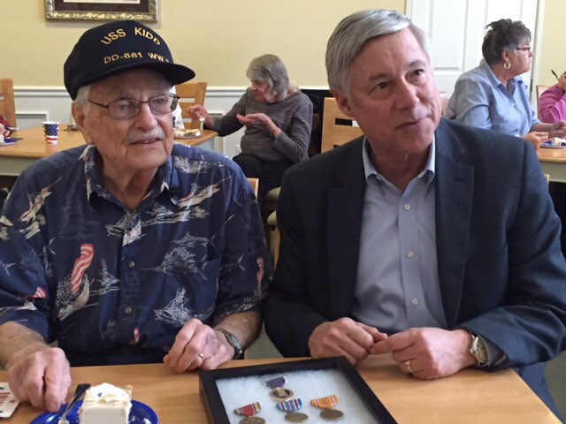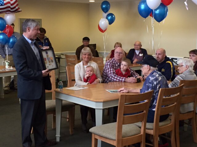 So honored to present Portage WWII veteran John Butler with 7 service medals including the Purple Heart. #MI06pic.twitter.com/t2XxNF1vqU