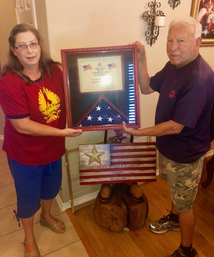 Recently, Northern District Director Albert Martinez presented Mr. and Mrs. Felix Farias of Seguin, Texas with a certificate and flag to commemorate their late son, U.S. Marine Corps Lance Corporal John Felix Farias, who was killed in action while serving in Afghanistan.pic.twitter.com/gN2r9uDVrj