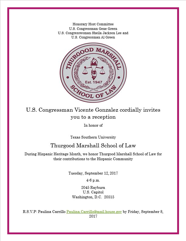 Excited to announce the reception I will be hosting to honor TSU Thurgood Marshall School of Law and its graduates on September 12!pic.twitter.com/GFYBEe1zjm