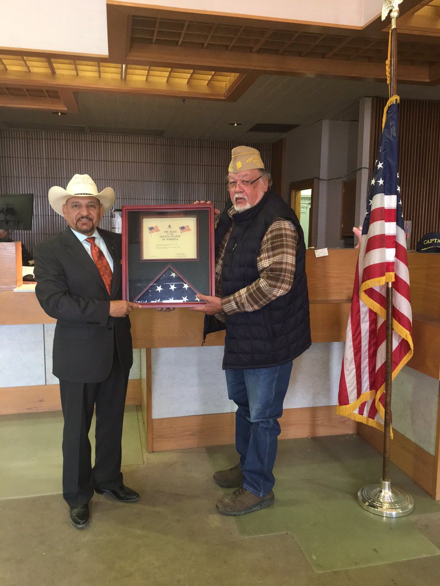 Our Northern District Director visited Runge, TX Mayor and local @VFWHQ Commander, Homer Lott Jr. Our office presented the mayor with an American flag that was flown over the U.S. Capitol as part of our mission to present a flag to every VFW in #TX15.pic.twitter.com/tFWofRV8T5