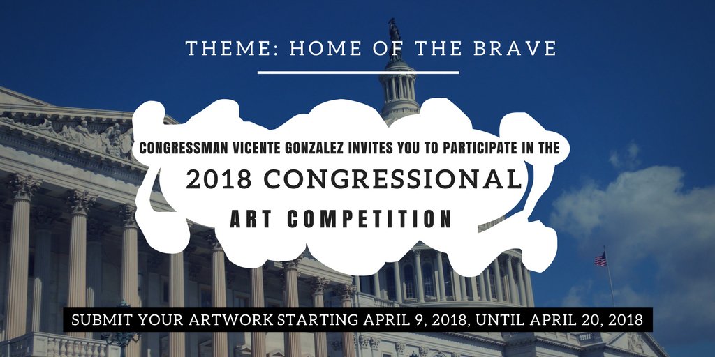 My office will begin accepting entries for the 2018 #CongressionalArtCompetition starting April 9, 2018, until April 20, 2018. For more information about this year's theme, 'Home of the Brave,' visit: https://bit.ly/2GQZIFm pic.twitter.com/L1nRgt6jzk