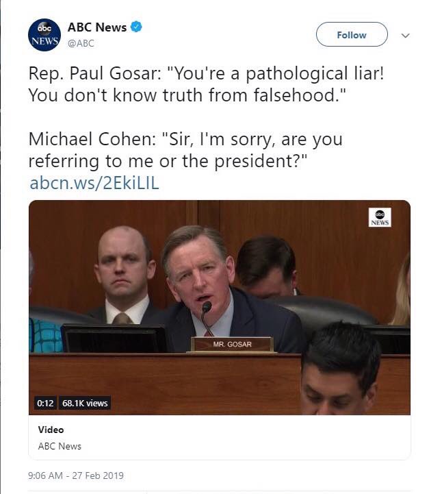 Trying to distract from the fact that you just embarrassed yourself and your entire district, AGAIN, but acting like a 2nd grader in the Cohen hearing today. Here’s a picture in case you forgot your main (tired) point.pic.twitter.com/23E3kz06Xf
