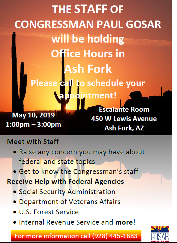 REMINDER: My staff will be holding office hours in Ash Fork tomorrow (FRIDAY) from 1PM - 3PM (AZ time). Details below ⬇️pic.twitter.com/7riM13F8z1
