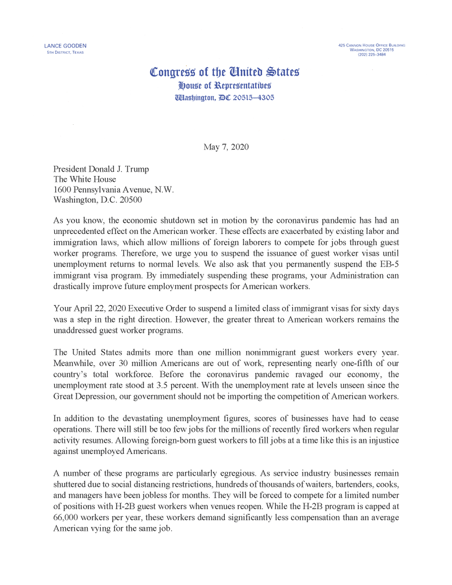 I appreciate more pressure on the White House from conservative legislators and activists. The cabinet and advisory panels are stacked too high with open borders activists at this time.