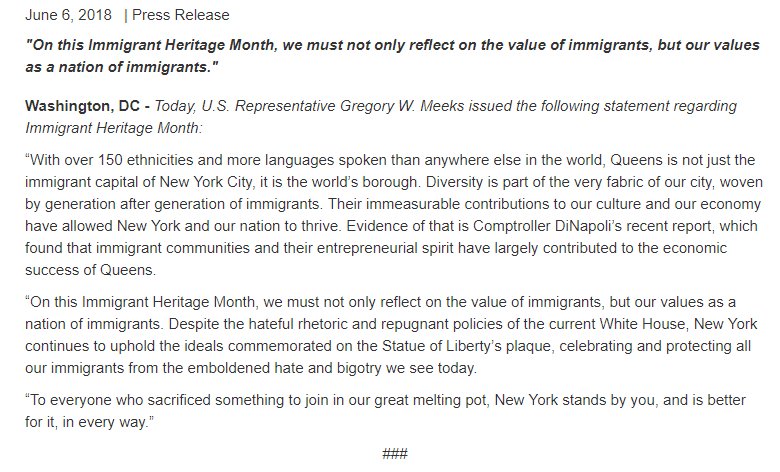 On this Immigrant Heritage Month, we must not only reflect on the value of immigrants, but our values as a nation of immigrants. My statement on #ImmigrantHeritageMonth: http://bit.ly/2kTvvgd pic.twitter.com/DOT3VEyND2